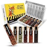 DIBYS WELCOME TO HELL Set de Regalo de Chiles Picantes | 6 Especias Picantes con Tarjetas de Recetas Incluidas | Juego de Especias con Copos de Chile, Ancho-Chile, Bird's Eye Chile y más | Regalos